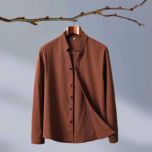 Relaxed-Fit Shirt with Band Collar and Button Front Detail