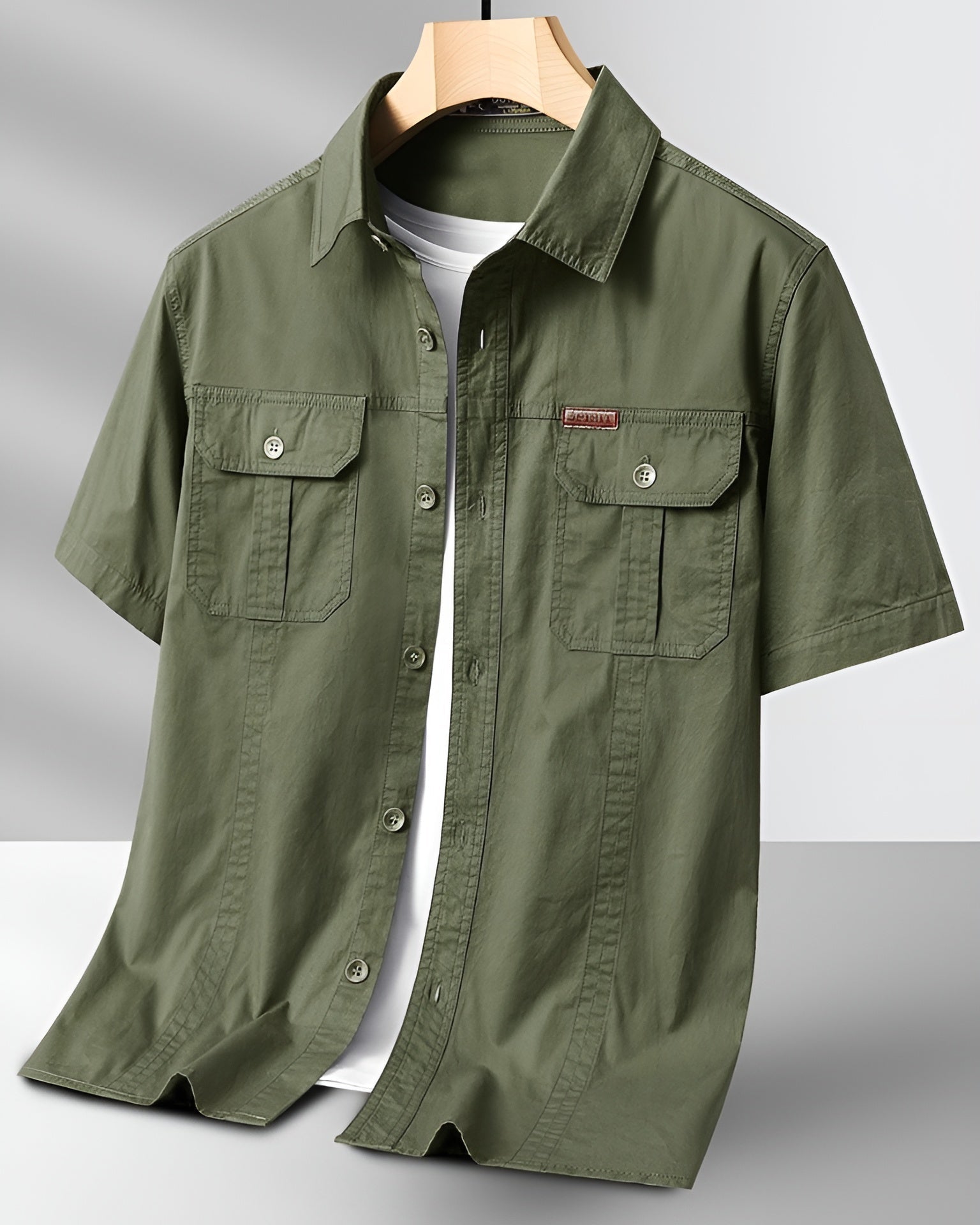Built for everyday wear, this short-sleeve cargo shirt blends function with clean structure. Made from a breathable cotton blend, it features flap pockets, matte buttons, and a sharp collar that stays crisp. Wear it open or buttoned for a laid-back, utilitarian look.